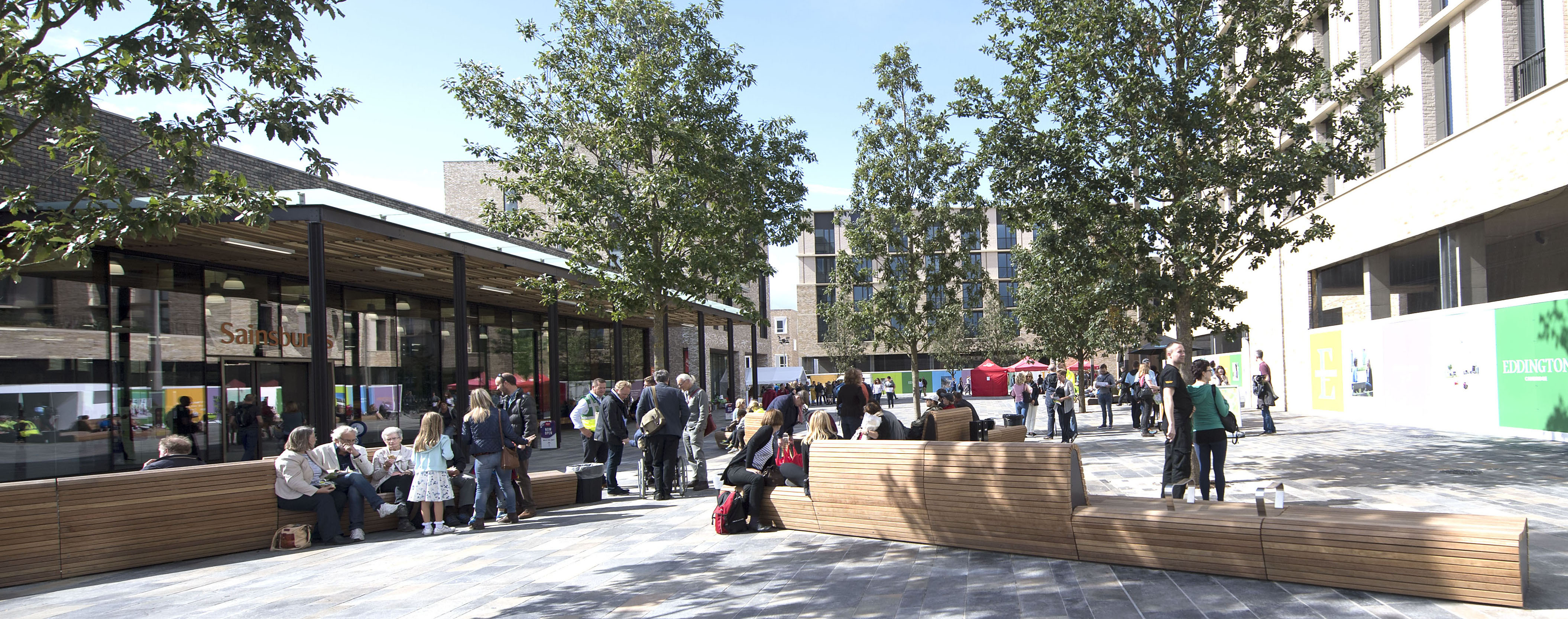 It provides modern, affordable homes for University staff - as well as all the services and facilities a community needs. It is within easy reach of the city centre by foot, bike and U bus route which also links Eddington to the train station and biomedical campus on the Addenbrookes Hospital site