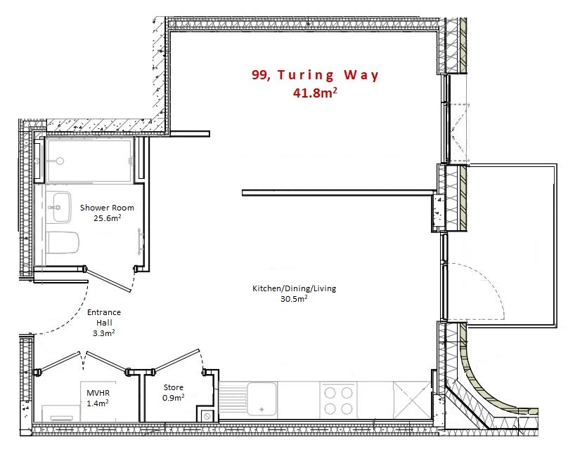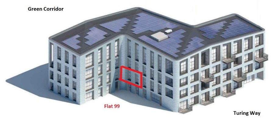 99 Turing Way (41.8m2), in block 'D' of the development, is a Second-floor, Studio apartment with a Balcony