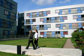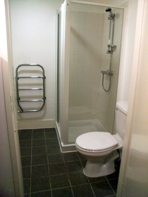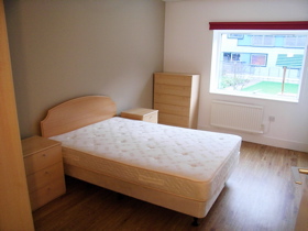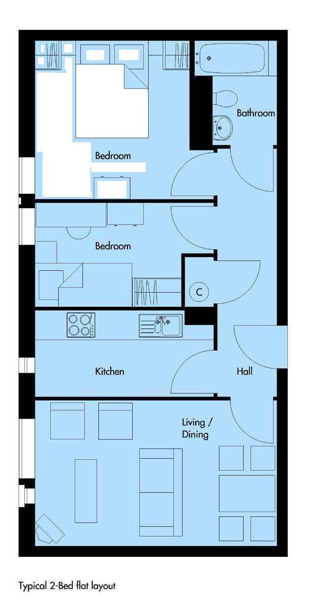Two bedroom flats consist of double bedroom and a single bedroom, have a shower over the bath and space and plumbing for a washing machine. Washing machines are not supplied by the University but can be purchased or hired. One car parking space can be applied for. [view sample floorplan]